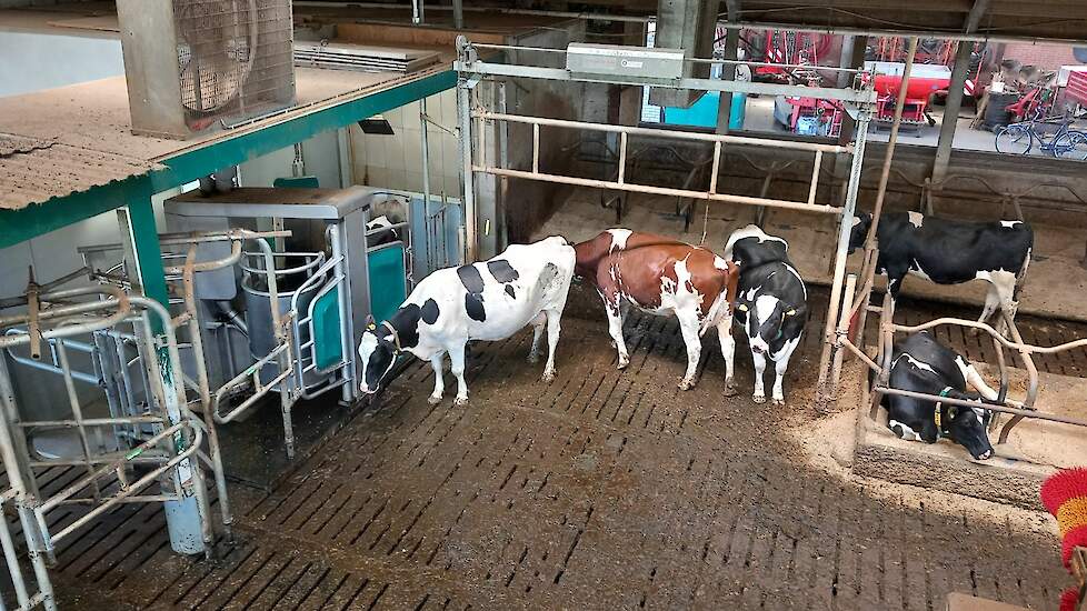 Een groot voordeel van de GEA robots vindt Edwin de ruimte om de koe heen. Weinig hekwerk en goed zicht op de robots. Het bekende putje van Gea bevalt ook goed. Het is prettig werken doordat je zelf rechtop kunt blijven staan. Bij de inrichting is meteen rekening gehouden met separatiemogelijkheden. “Een koe bekappen is zo gebeurd als de koe al klaar staat” geeft Edwin aan. Het werk kan met behulp van de separatie efficiënt plaatsvinden en hierdoor houdt je plezier in het werk. De bezetting van 45 koeien per robot helpt ook mee aan het resultaat, zo staan er geen wachtrijen en elke koe heeft ruim de mogelijkheid om zich drie keer per dag te laten melken.
