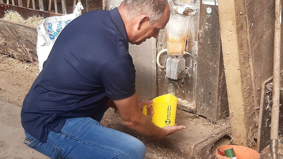 Iedere vijf weken komt Toine op het bedrijf. Hij beoordeelt de kalveren en kalibreert de beide drinkautomaten. Dit is ook wel nodig, want één automaat wil nog wel eens iets af gaan wijken in de dosering. “Door dit weer tijdig bij te stellen, kunnen we tegenvallende groei en gezondheidsproblemen bij de kalveren voorkomen”, zo legt hij uit. “Het is fijn dat Toine dat regelmatig doet, want dat zijn van die dingen die er hier anders gewoon bij in schieten”, geeft Moniek toe.