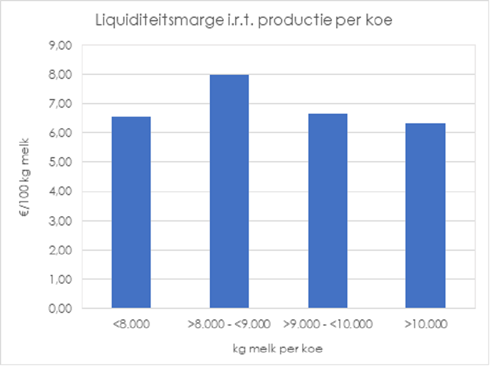 Liquiditeitsmarge in relatie tot productie per koe