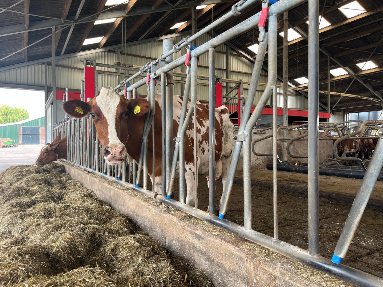 Opvallend aan het bedrijf van de familie Alkemade is de aandacht voor natuurlijke beweiding. “We hebben 10 hectare land rondom de boerderij. De koeien lopen vrij in en uit, net zoals ze gewend zijn in de stal.” Ook de roodbonte veestapel is kenmerkend: een bewuste keuze vanwege hun robuuste gezondheid. “De vorige generatie werkte al met robuuste MRIJ-koeien (Maas-Rijn-IJsselvee-koeien). Wij zetten die lijn graag voort, passend bij onze visie op diergezondheid en duurzaamheid.”
