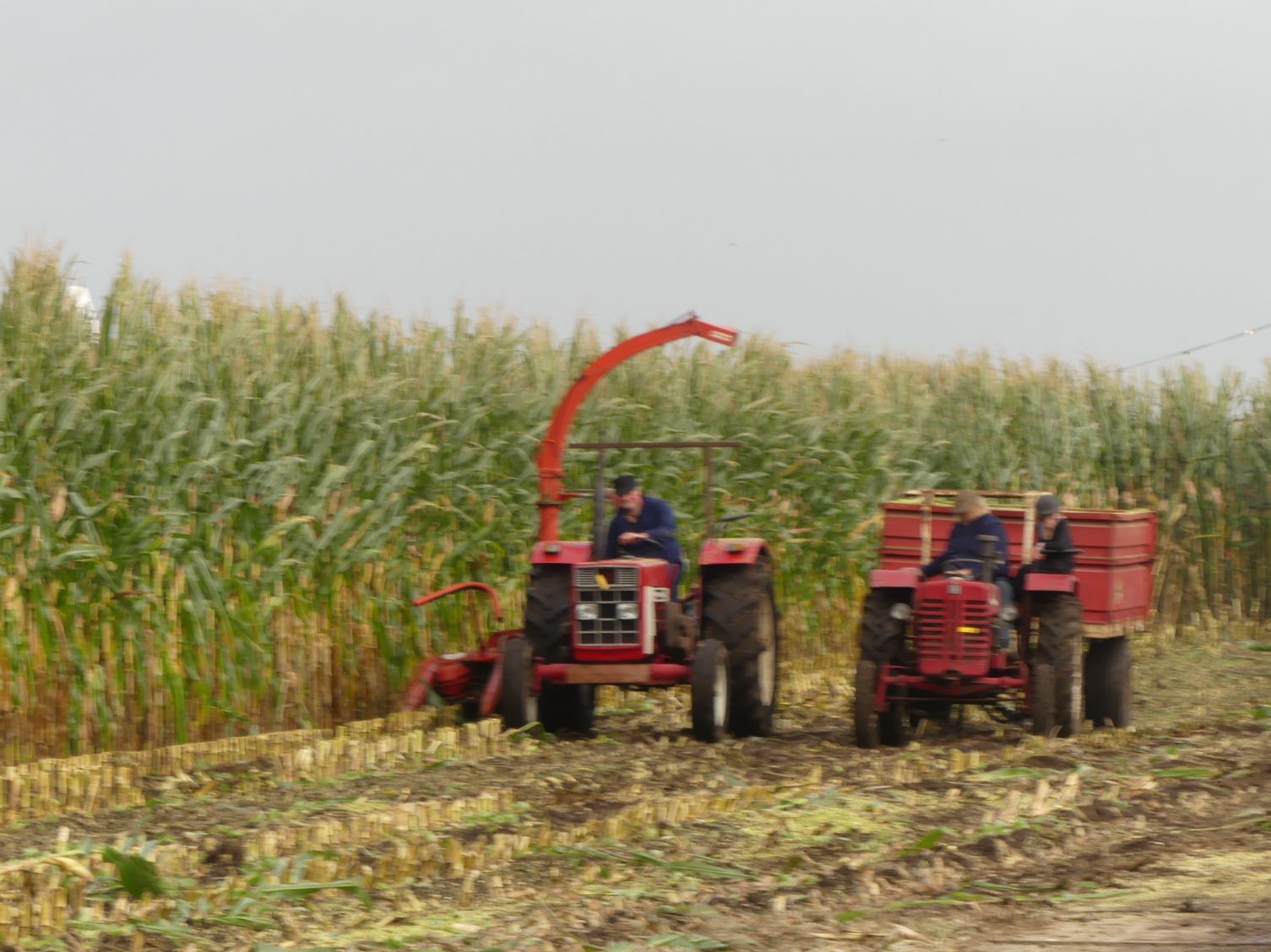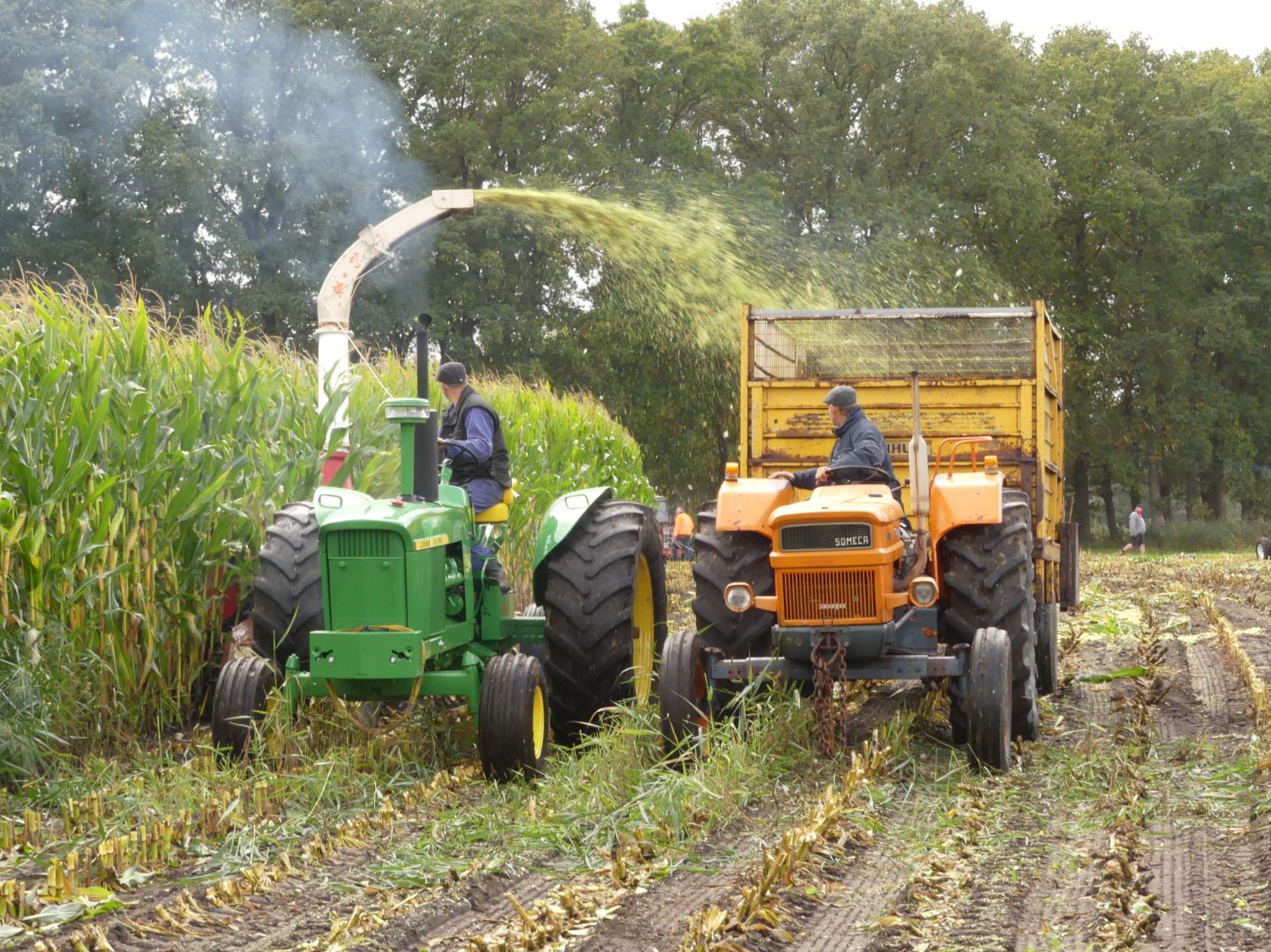 De machines, vaak tientallen jaren oud maar nog steeds in topconditie, moesten hard werken om door de zware, groen maïs heen te komen. Waar moderne machines met gemak door het gewas snijden, vergde het bij deze klassiekers vakmanschap, geduld en soms een helpende hand van de omstanders.