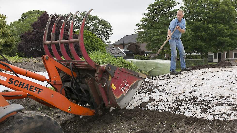 Inkuilen bleek een zoektocht. Waar Jan vroeger koos voor een nattere kuil - minder arbeidsintensief - stuurt hij nu op een gulden middenweg. “Niet te droog, niet te nat. Een hele droge kuil past niet bij ons: het is lastiger te voeren en minder smakelijk voor de koe. Maar te nat zorgt voor hogere emissies, dat proberen we nu actief te voorkomen.”