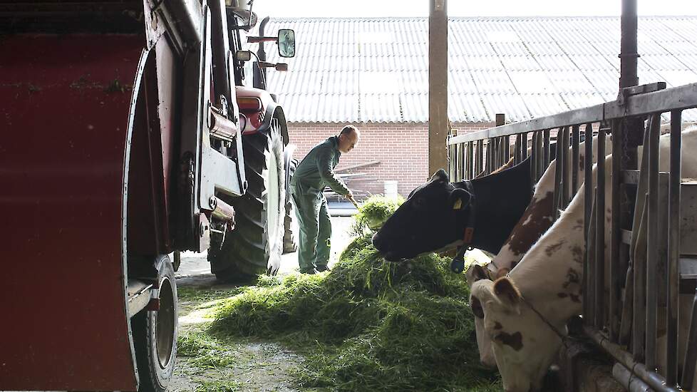 Hij bracht zijn ruw eiwit per kilo droge stof terug naar 153 g RE/kg DS, zonder verlies van productie. De gehalten liggen bovendien nog steeds rond 4% eiwit en 5% vet. “De koeien doen het goed. Daar hebben we nu dus geen zorgen meer om.”