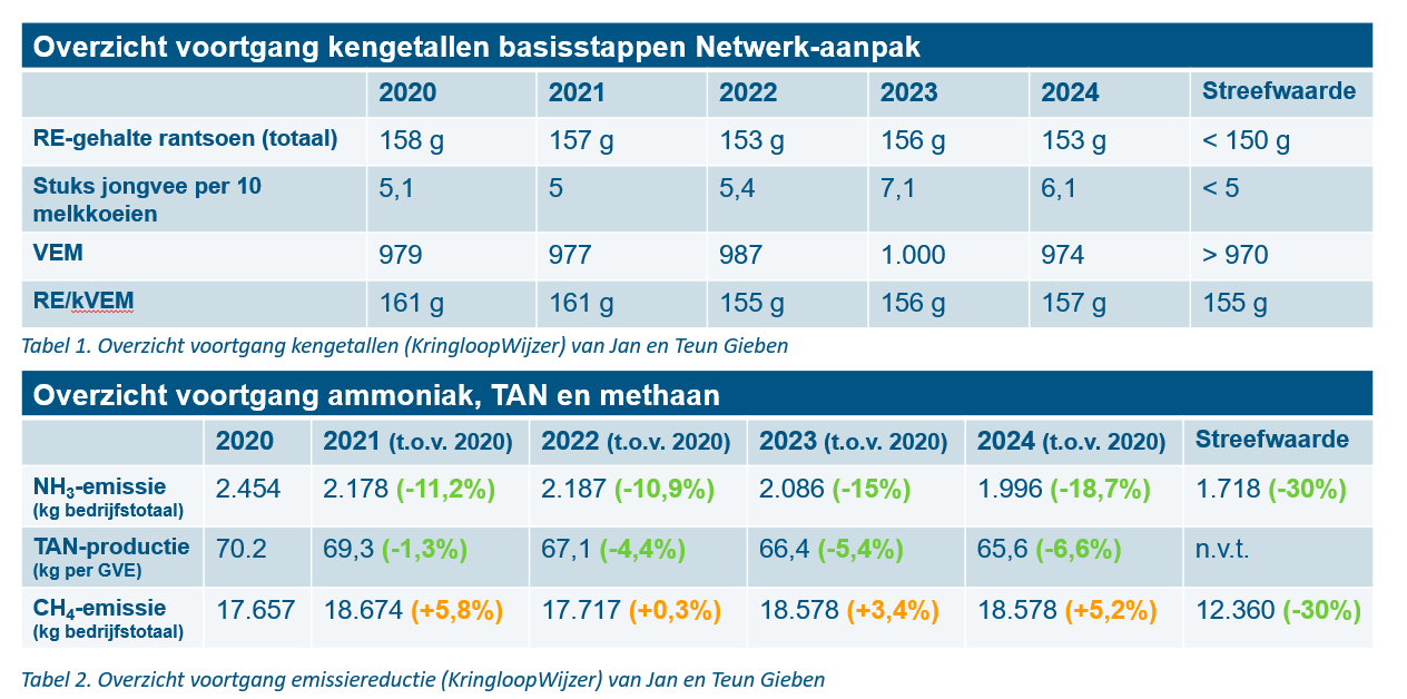 Terugkijkend is Jan Gieben tevreden. “We hebben de gehalten vastgehouden, ruw eiwit en ureum verlaagd en emissies teruggebracht. Dat is niet vanzelfsprekend in jaren met zoveel weersextremen. De basis is goed, en daarop bouwen we verder.”