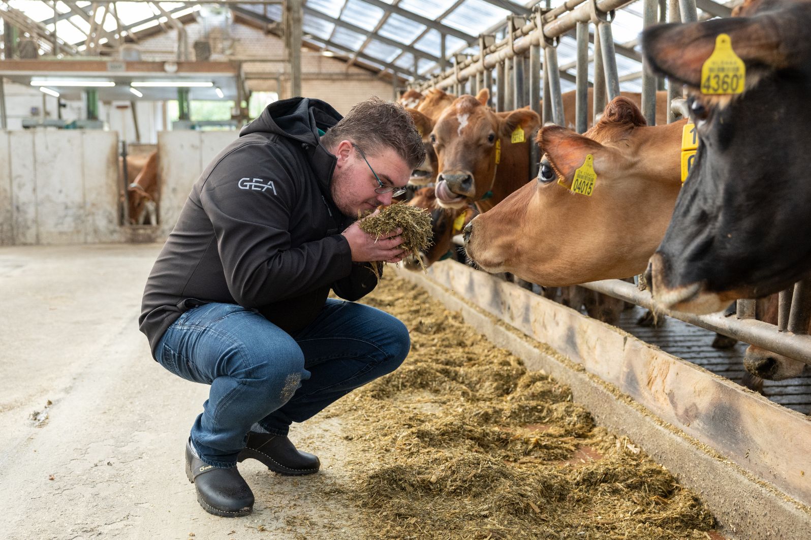 Gijs Winters runt samen met zijn moeder een melkveebedrijf met circa 130 Jersey-koeien op 70 hectare grond, waarvan 42 hectare gras, 22 hectare maïs en 6 hectare zomergerst.