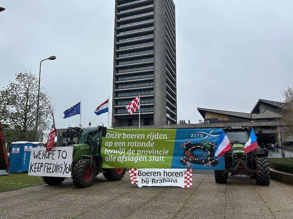 Brabantse boeren protesteren vrijdag tegen provinciaal beleid bij het provinciehuis in Den Bosch. De Brabantse Statenleden bespreken de hele dag plannen van Gedeputeerde Staten (het provinciebestuur) die niet goed uitpakken voor boeren. Het gaat onder meer over streng gewasbeschermingsmiddelenbeleid, beregeningsbeleid, overgangszones bij Natura 2000-gebieden en stikstof: het stallenbesluit (stallendeadline).