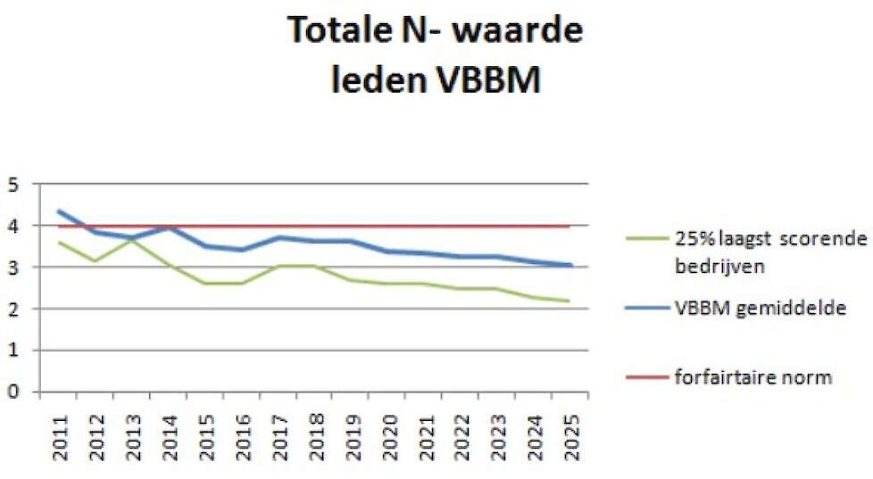 'De mestanalyses van de 25 procent laagst scorende bedrijven geven inzicht in welke reductie van stikstof in mest mogelijk is', stelt de VBBM in haar persbericht.