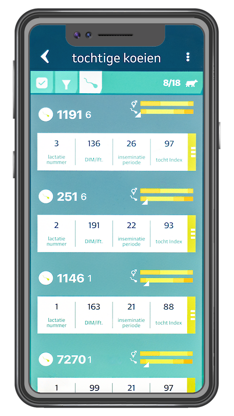 Het systeem maakt het ook mogelijk om snel overzichten op te roepen: welke koeien waren zeven dagen geleden tochtig, hoe sterk was die tocht en wat was hun gezondheidsstatus? “Op basis van die data kun je veel beter bepalen of je een dier wel of niet inzet als ontvangster”, benadrukt Kees. “Dat voorkomt teleurstellingen en verhoogt de kans op een dracht aanzienlijk.”