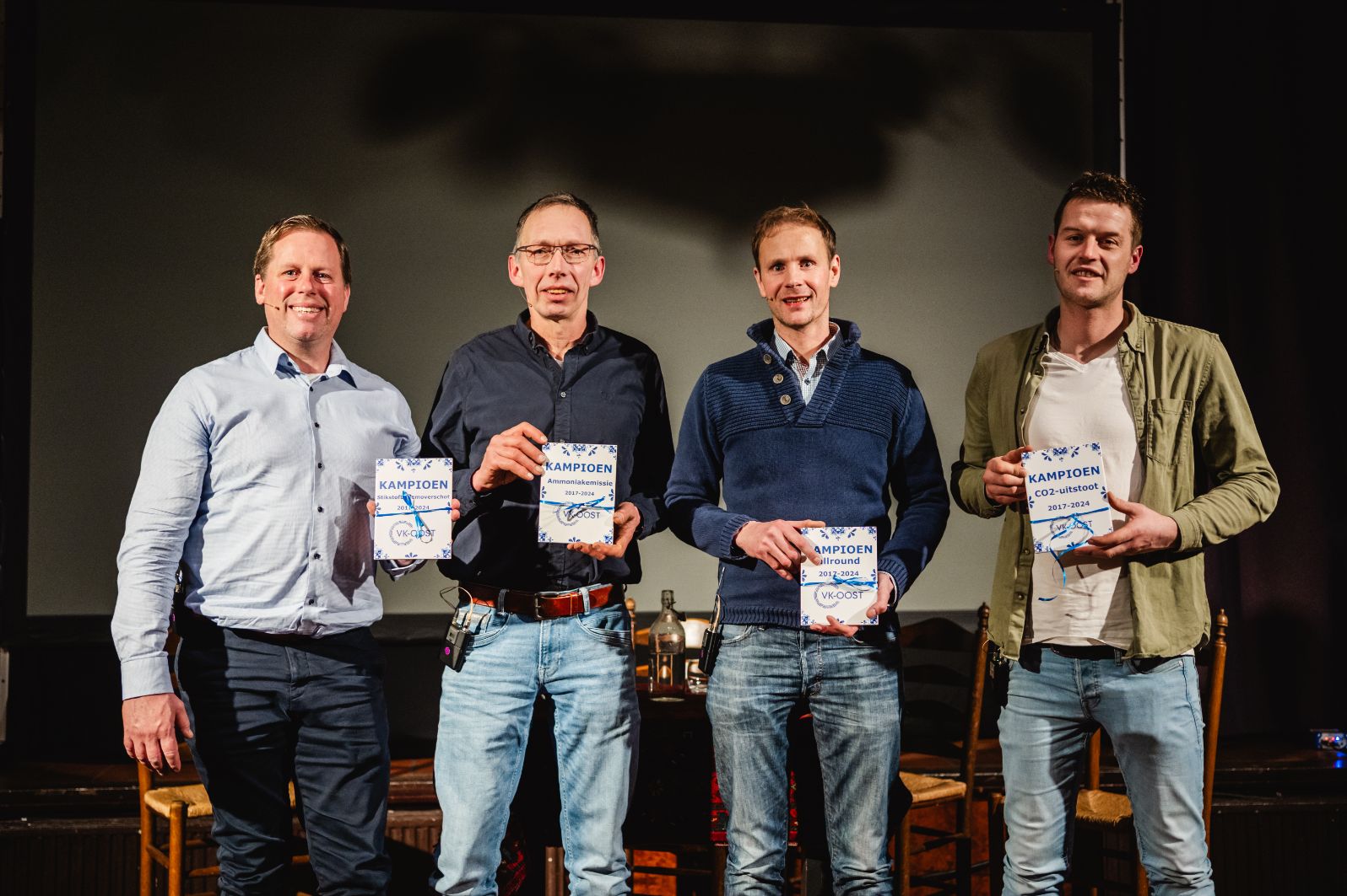 Vier ondernemers staken boven de rest uit en ontvingen een onderscheiding voor hun prestaties. André de Groot boert in Laren en werd uitgelicht door zijn lage stikstofbodemoverschot van 60 kilogram stikstof per hectare per jaar. Hij houdt 120 melkkoeien met weidegang, veel kruiden en grasklaver. Op zijn bedrijf staat de bodem centraal, waarbij De Groot stuurt op een hoge stikstofbenutting en zo min mogelijk uitspoeling.