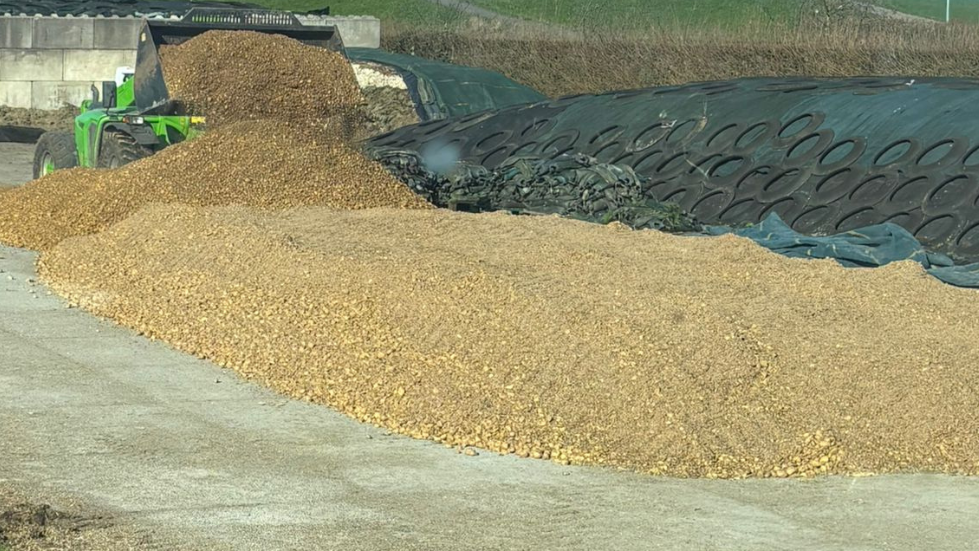 Wil je voeraardappelen voor een langere tijd voordelig door blijven voeren? Dan is inkuilen een logische stap. Harmen kiest er ook voor om een deel in te kuilen: “We hebben ze samen met de eerste snede graskuil ingekuild. Zo kun je ze goed bewaren.”