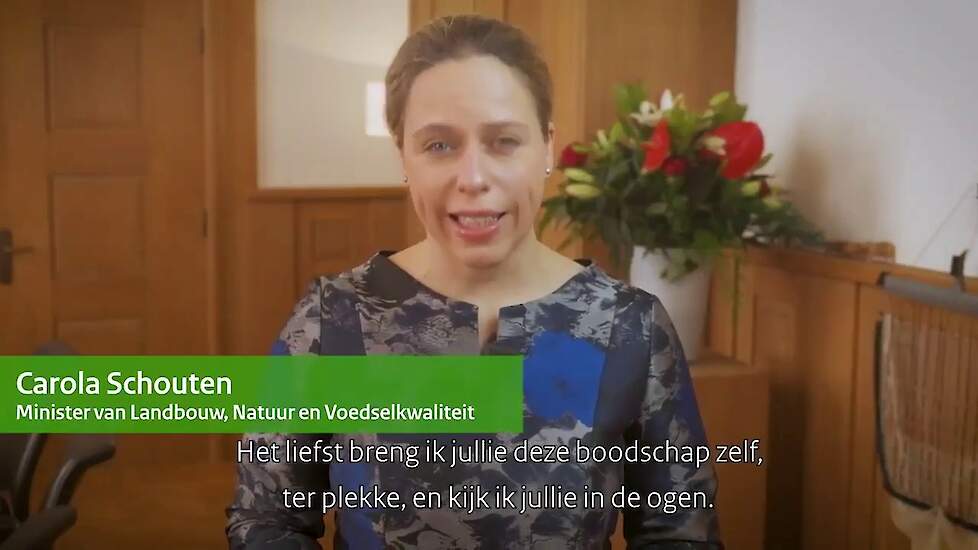 „Ik wil graag iets tegen alle harde werkers in de voedselketen zeggen", zegt Schouten. „Tegen degenen die zich nu iedere dag onverstoorbaar en met man en macht inspannen om te zorgen dat wij allemaal gezond en veilig kunnen blijven eten. Miljoenen mensen in Nederland, Europa en daarbuiten stellen vertrouwen in jullie."