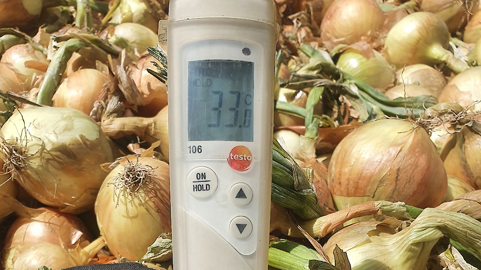 Akkerbouwer Dirk Jansen stopt tijdig met het rooien van uien om zonnebrand te voorkomen. Lees ook op Akkerwijzer: Zonnebrand ligt op de loer bij uien rooien tijdens hitte