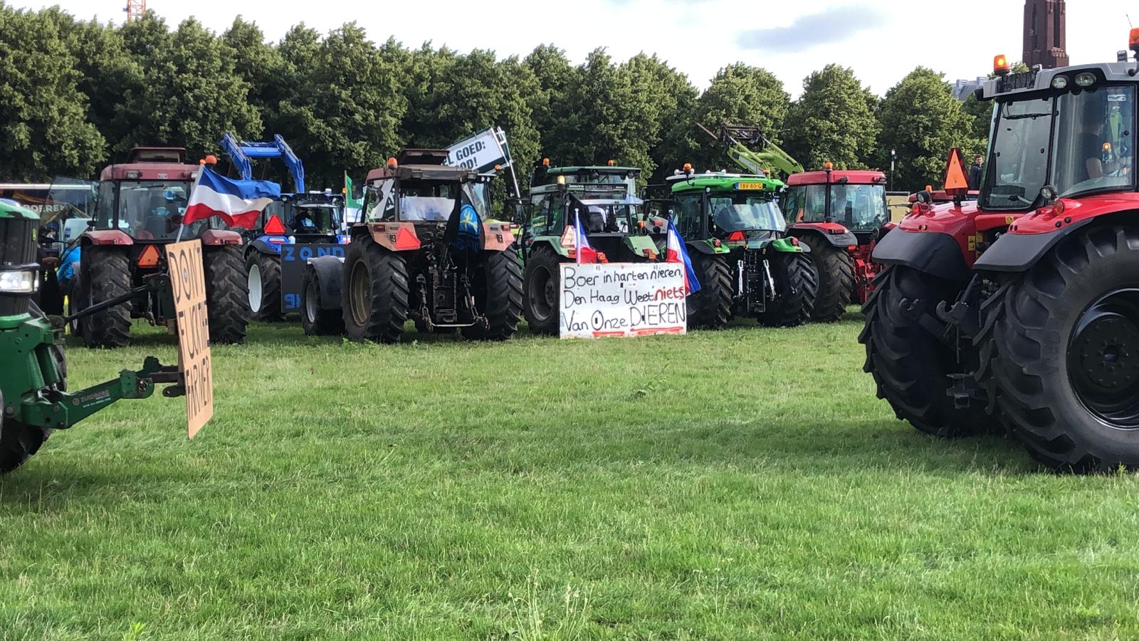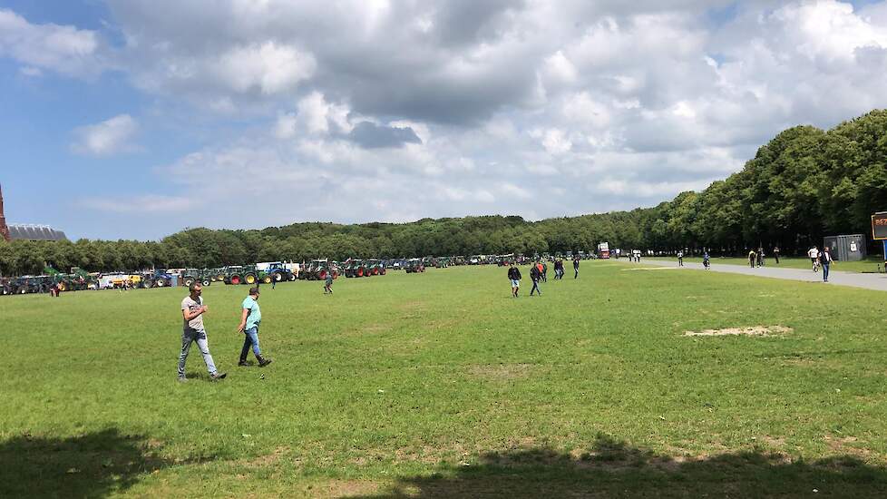 Politieagent ter plekke: ,,Er mogen 75 trekkers op het Malieveld staan, daar zijn goede, duidelijke afspraken over gemaakt. De rest moet parkeren op de Bezuidenhoutseweg. Er is minder politie dan bij andere boerenprotesten. De politie kan wel opschalen als dat nodig is.”