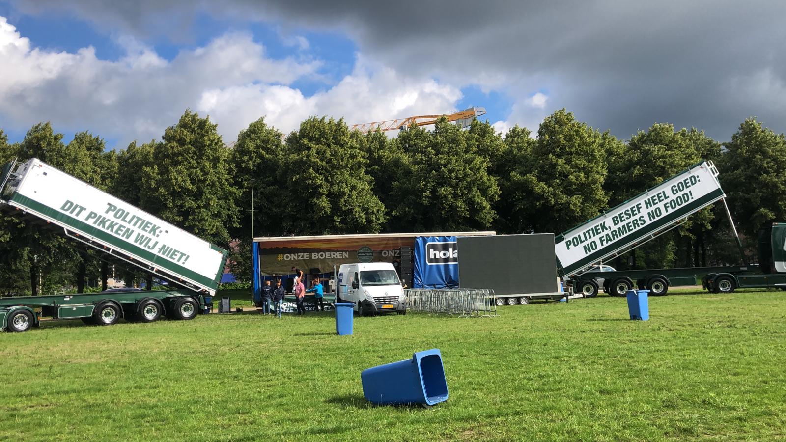 De organisatie (Agractie en een aantal ‘trekkergroepen’ uit Utrecht en Zuid-Holland) bouwt het podium op het #Malieveld op. Hier spreken straks onder meer verschillende politici. Op het programma staan onder meer Derk Boswijk (CDA), Thom van Campen (VVD) en Tjeerd de Groot (D66). pic.twitter.com/xWMSPvchPn