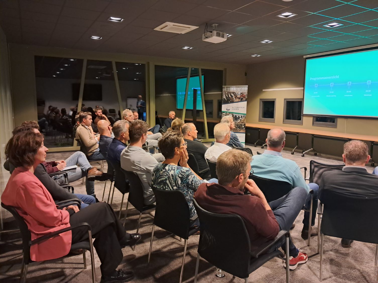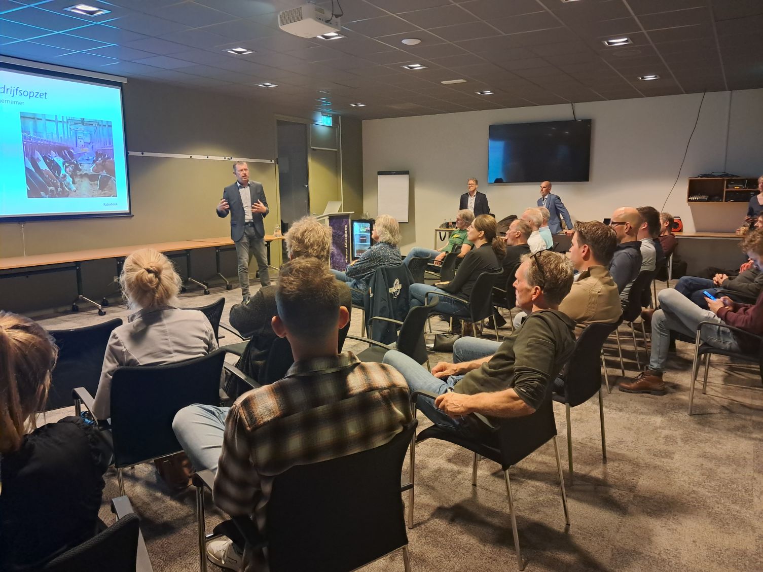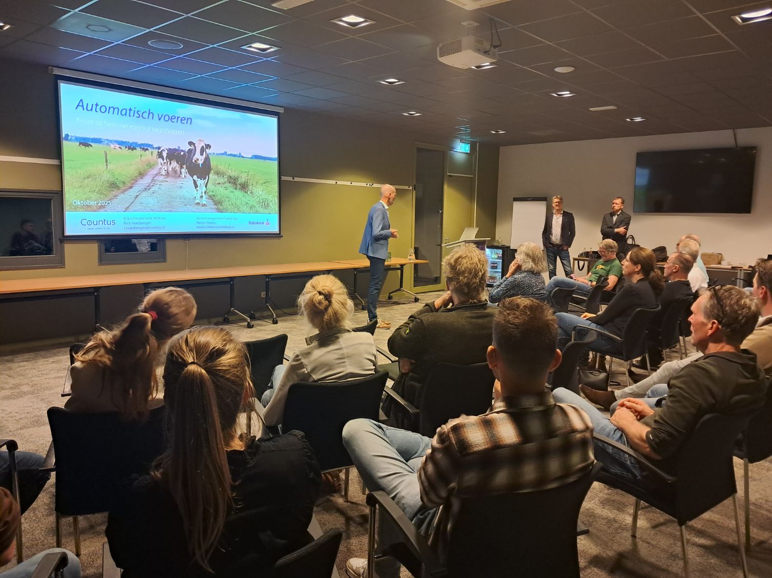 Henri van Ittersum (Eurokoeidee.nl) neemt de bezoekers mee in de voordelen van automatisch voeren. Beeld: Karin van den Barg