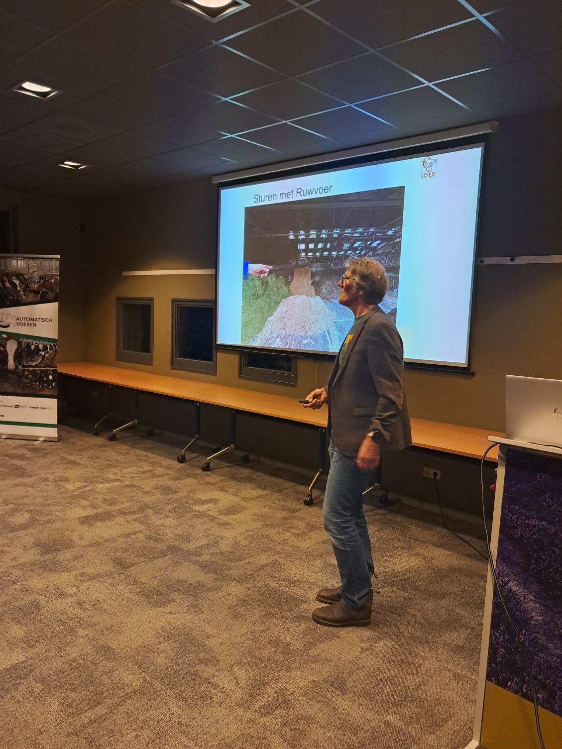 Rick Hoksbergen (Countus) gaat in op de impact van voerefficiëntie en voerkosten bij het gebruik van een automatisch voersysteem. Beeld: Karin van den Barg